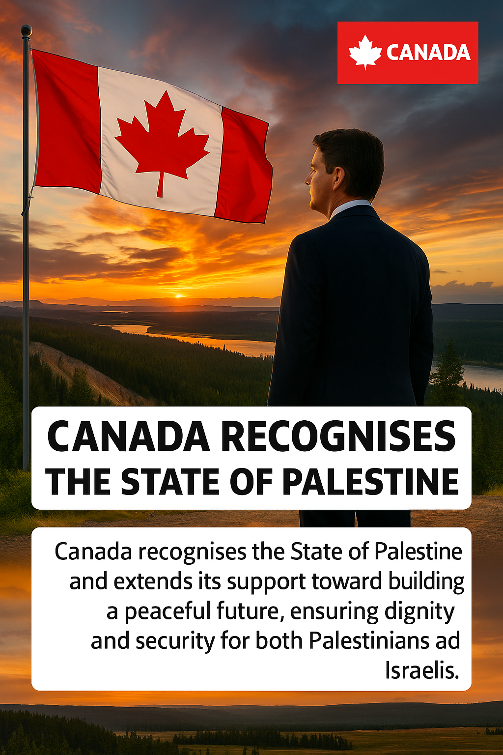 The announcement was made by the Prime Minister’s Office earlier today, emphasizing Canada’s commitment to supporting peace, stability, and human rights in the Middle East. Officials said the decision reflects both Canada’s longstanding support for a two-state solution and growing international consensus on the issue.