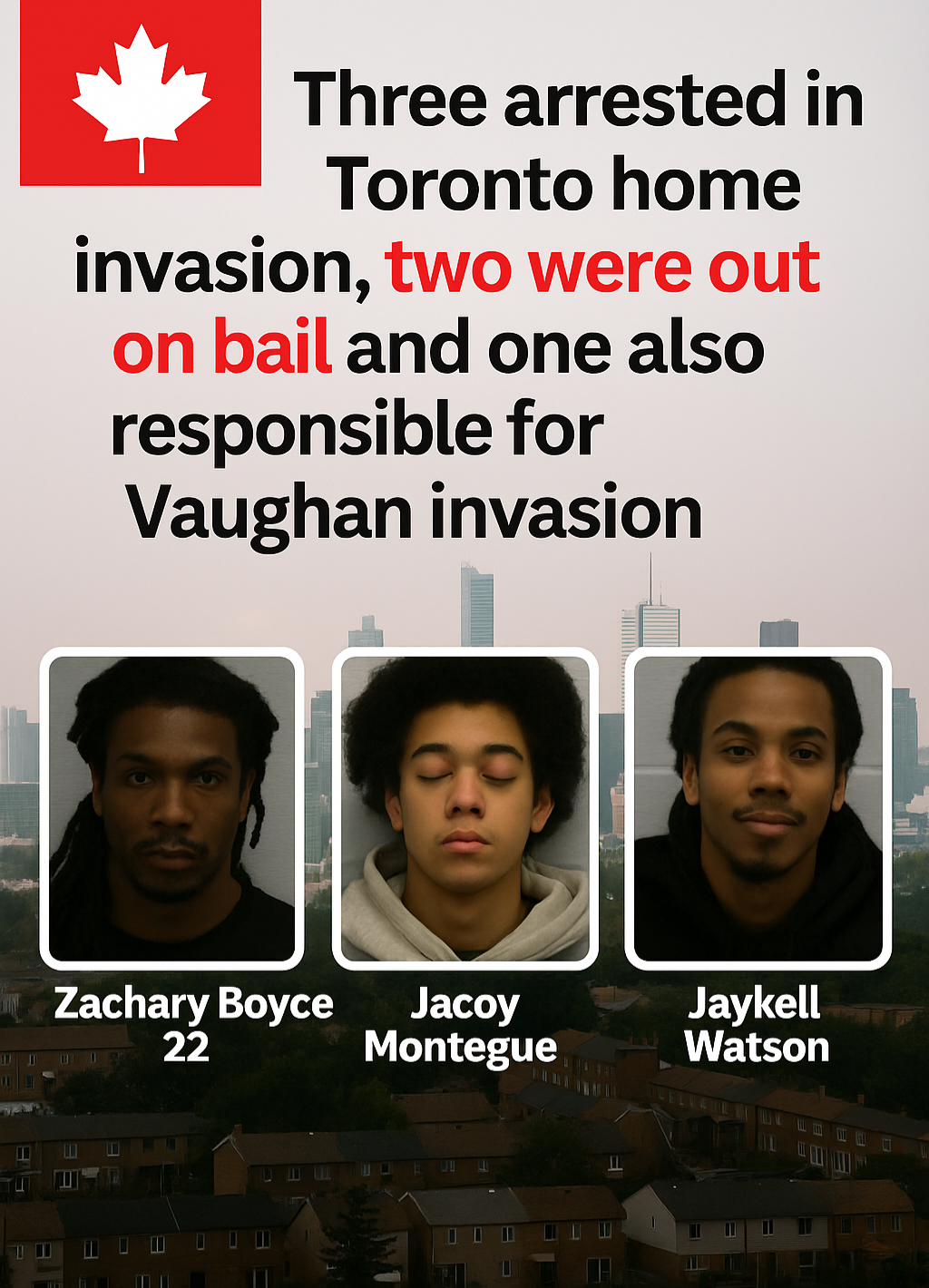 Toronto, ON – September 17, 2025 – Toronto police have arrested three men following a violent home invasion in the city, with authorities revealing that two of the suspects were already out on bail at the time of the crime. Investigators also confirmed that one of the men is connected to a separate home invasion incident in Vaughan.