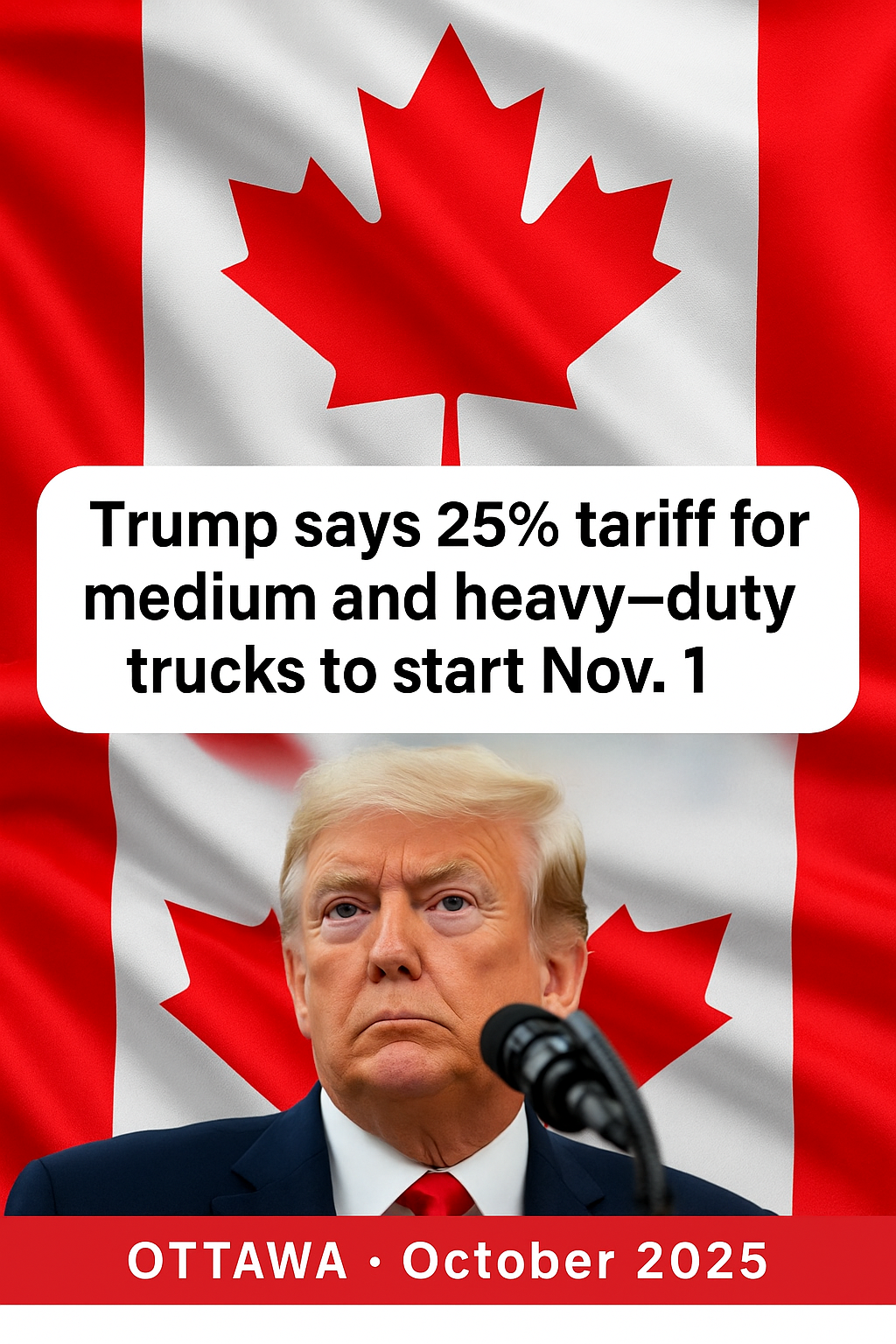 Former U.S. President Donald Trump has announced a new 25% tariff on medium and heavy-duty trucks imported into the United States, set to take effect on November 1, 2025.