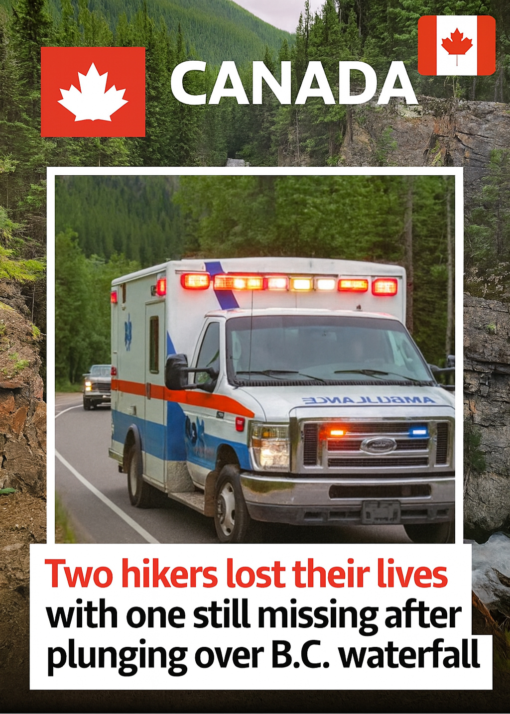 BRITISH COLUMBIA — A devastating incident near a remote waterfall in British Columbia has left two hikers dead and another missing, authorities confirmed. The trio was discovered after reportedly plunging over a rugged cliff while hiking in the remote wilderness.